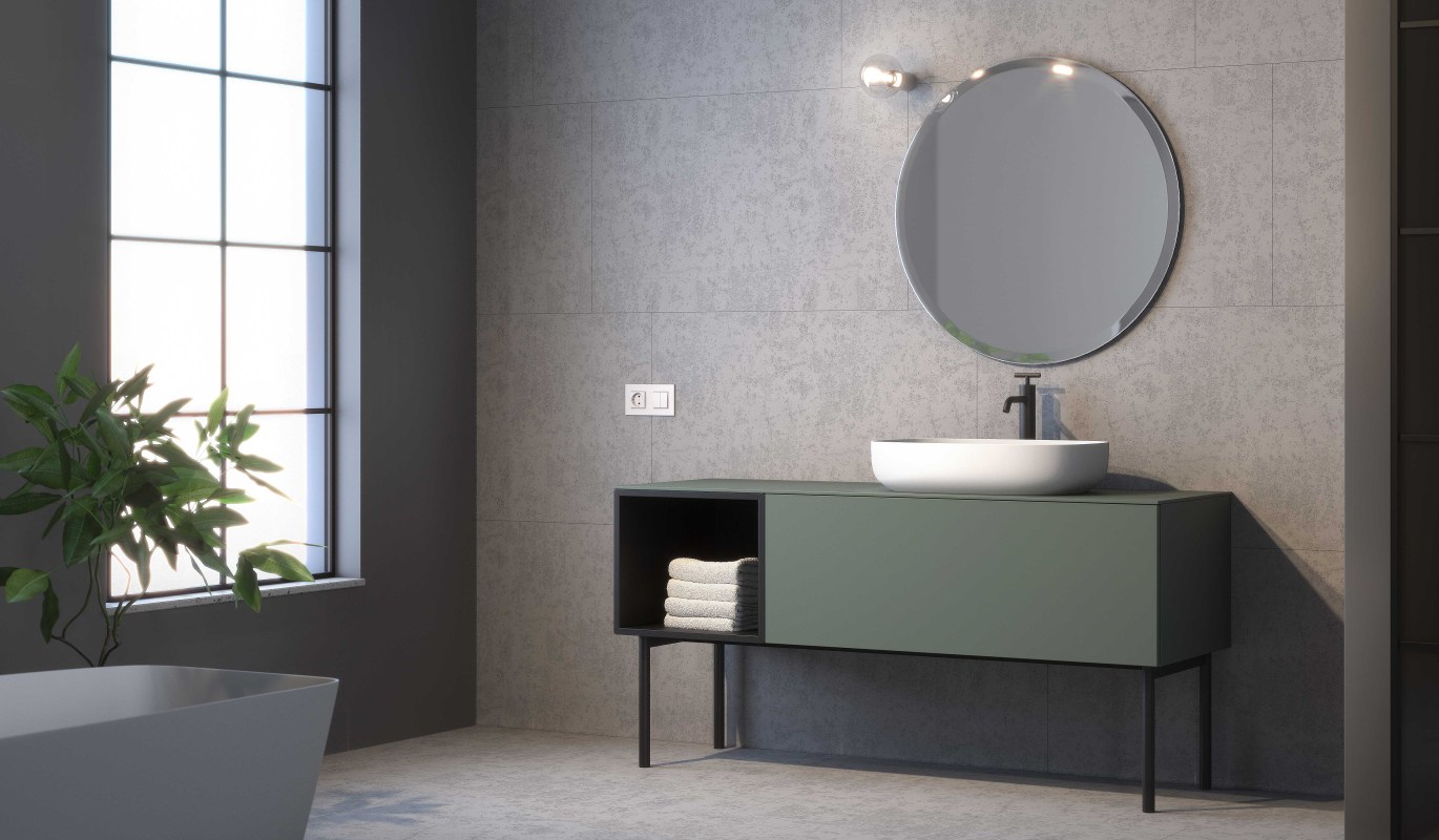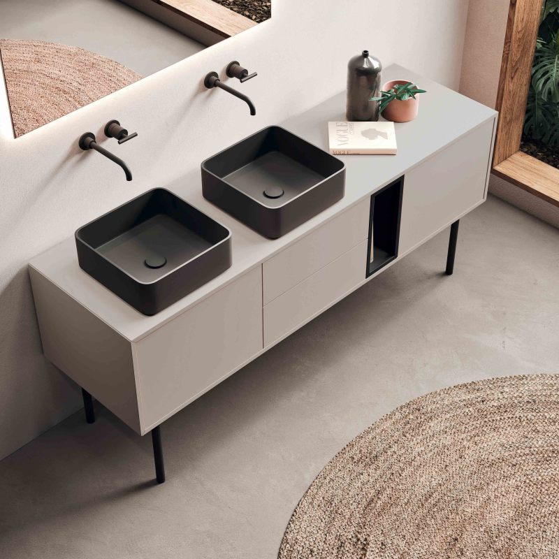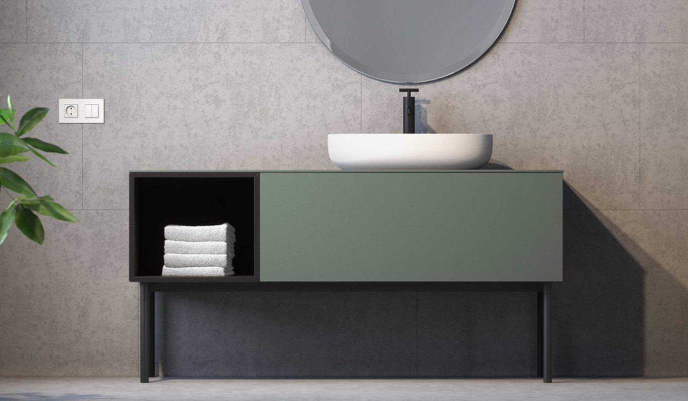 Il basamento è realizzato con materiali di alta qualità che garantiscono una lunga durata nel tempo. Potrai scegliere tra una vasta gamma di colori opachi per abbinarlo al design del tuo mobile.
