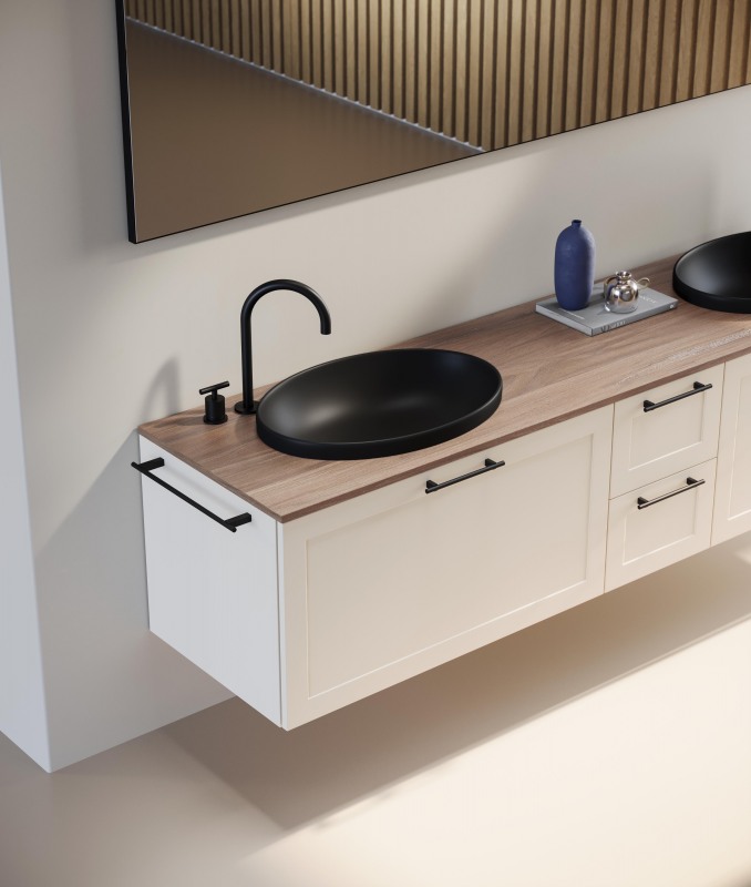 Il classico frontale a telaio viene rivisto in chiave contemporanea realizzando un sistema raffinato e versatile. Equilibrato nelle proporzioni, il frontale a telaio classico si declina in due varianti: con apertura push-pull o con maniglia.