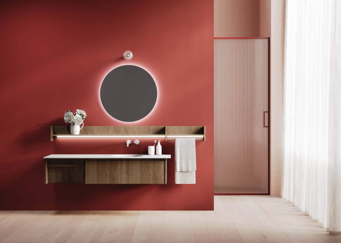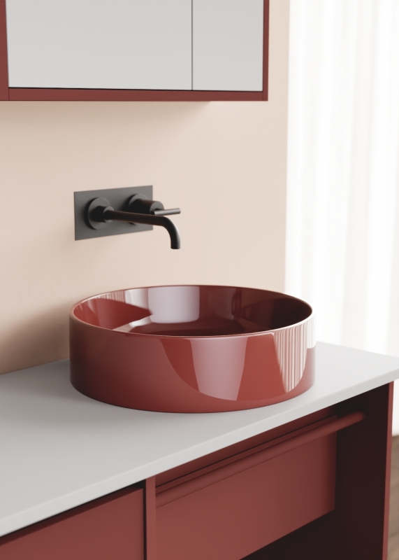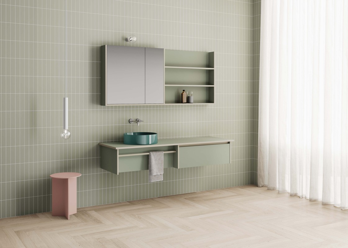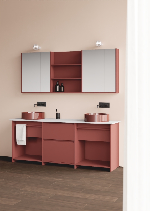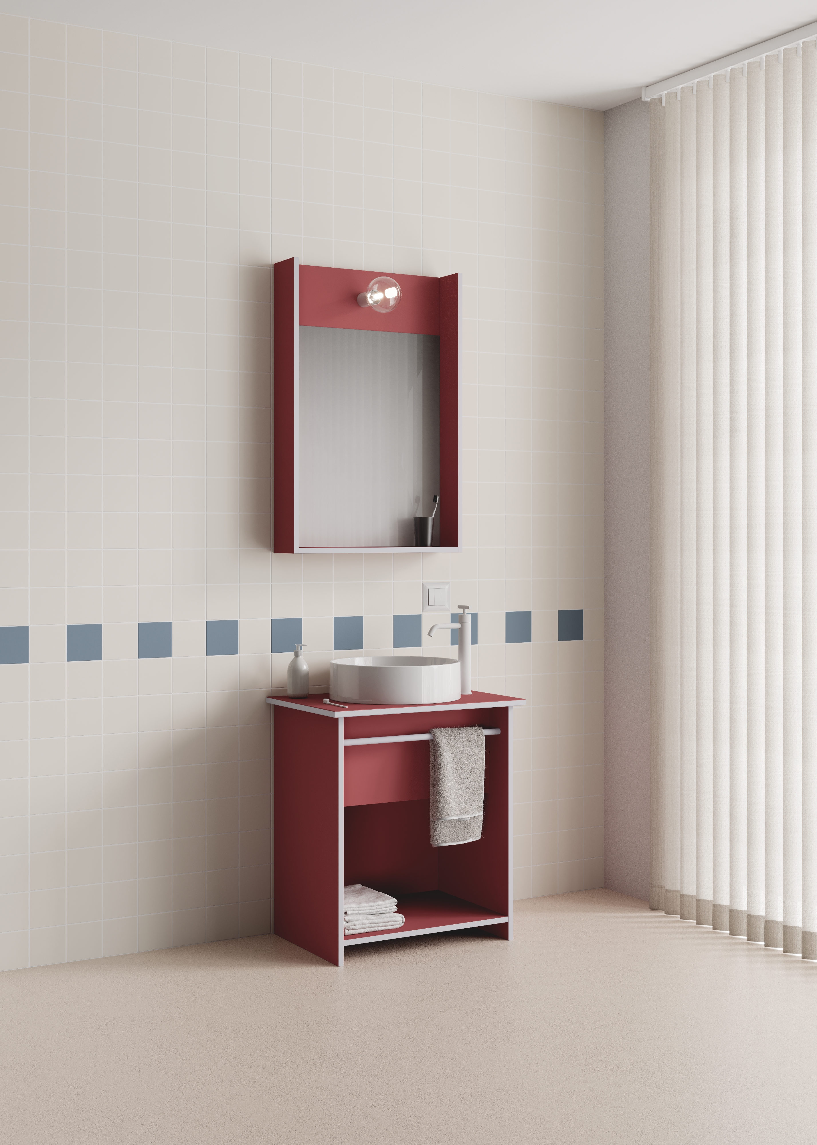 Nella configurazione a terra, Elementare assume un carattere compatto ma leggero grazie allo zoccolo rientrato, che crea un raffinato effetto sospeso. La versione sospesa accentua ancora di più la purezza dei volumi e la precisione delle proporzioni. In entrambe le soluzioni, ogni dettaglio è pensato per coniugare funzione e design: la barra portasalviette, perfettamente integrata, nasconde con discrezione l’apertura del cassetto, trasformando un gesto quotidiano in parte della composizione.