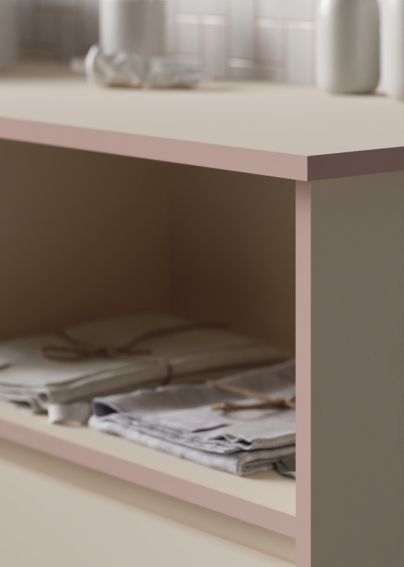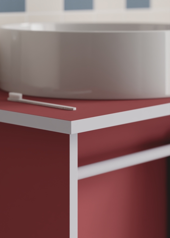 La possibilità di inserire un bordo a contrasto consente di personalizzare il top con i colori della gamma Tono o con l’effetto alluminio.