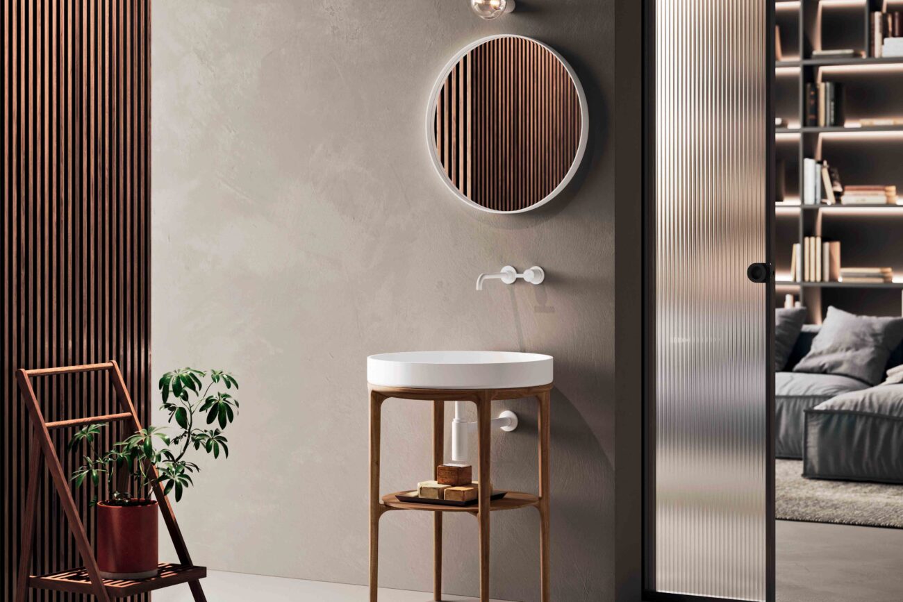 Nucci is a new brand born from a branch of Mobilduenne, a historic Marche-based company specializing in bathroom furniture. Inspired by a territory suspended between sky and earth, Nucci reinterprets the classic bathroom in a contemporary way through color, lightness, and simplicity.