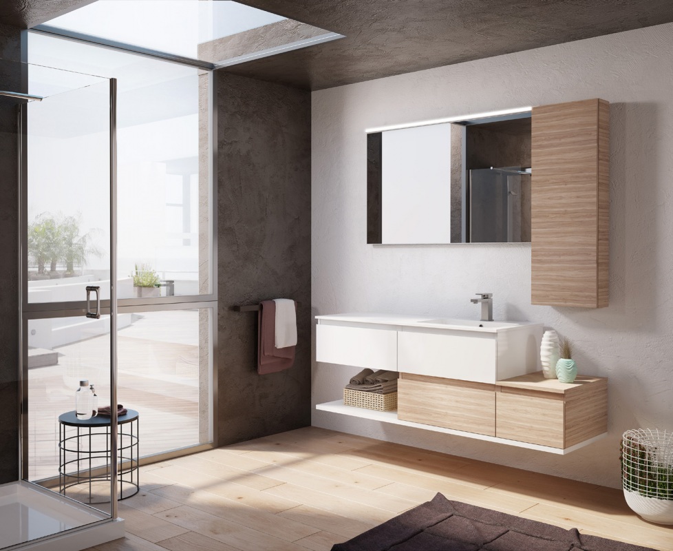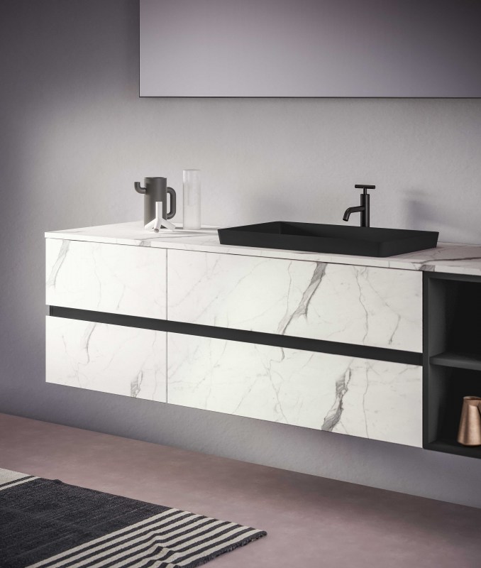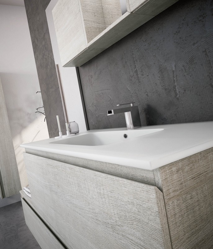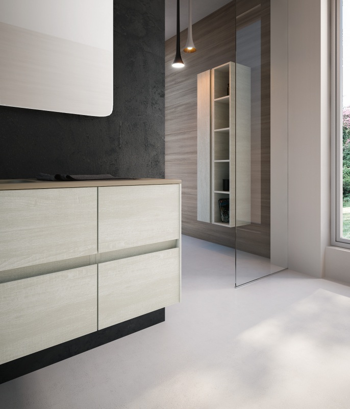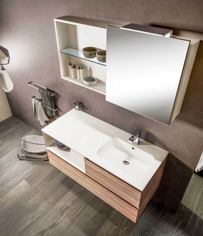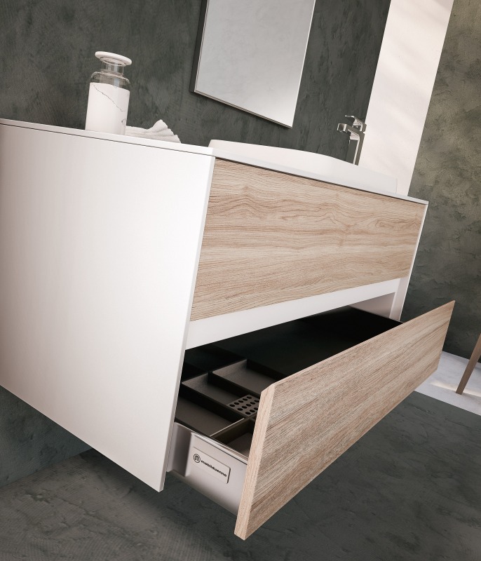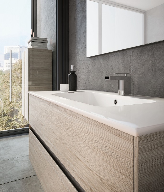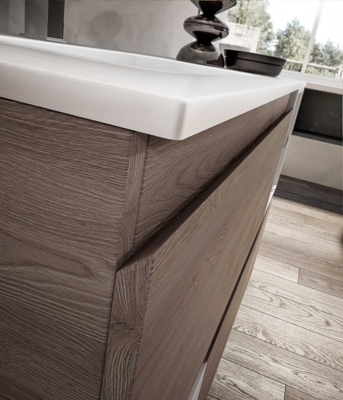Una collezione versatile dalle molteplici finiture e colorazioni, che si completa grazie a cinque profondità diverse di mobili per creare una composizione d’arredo bagno perfettamente personalizzata.