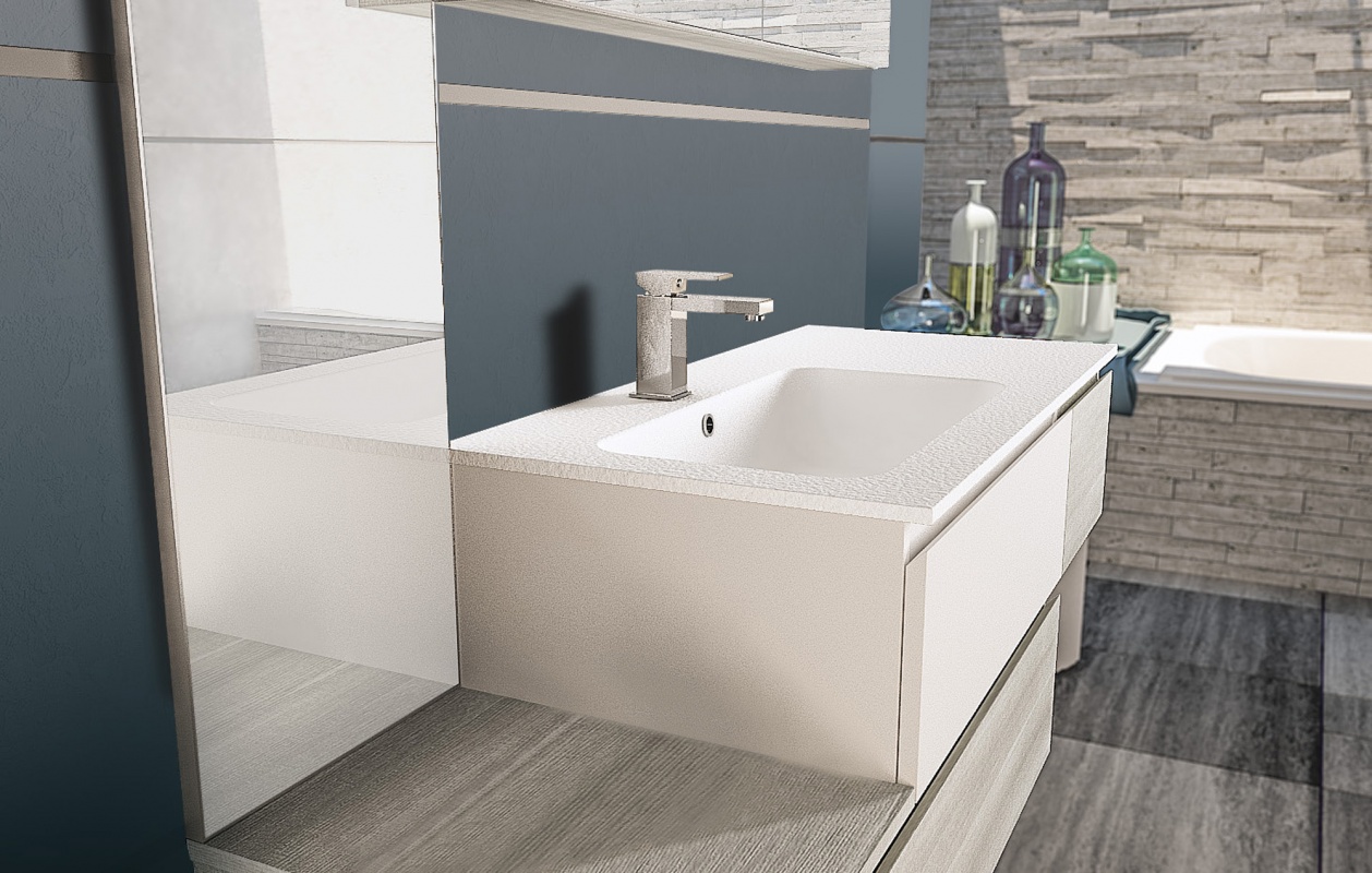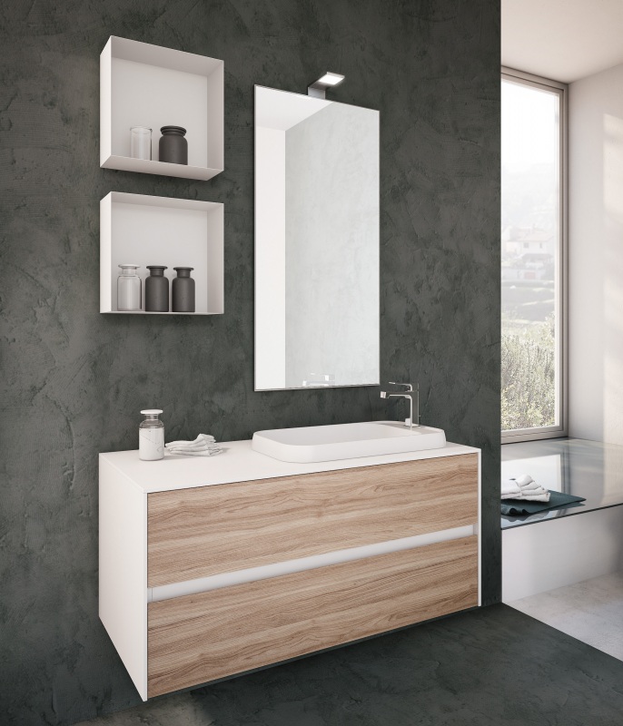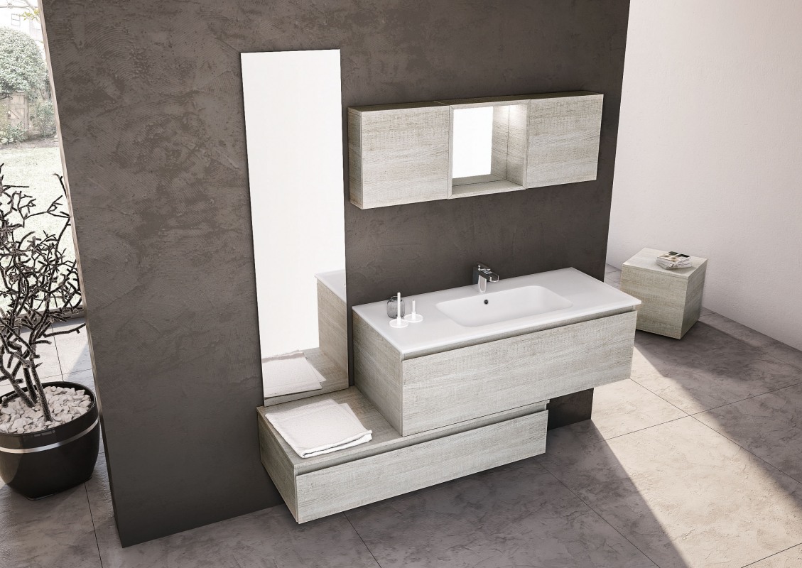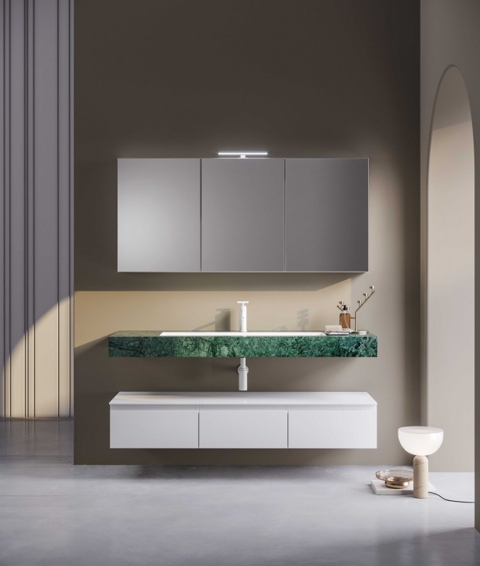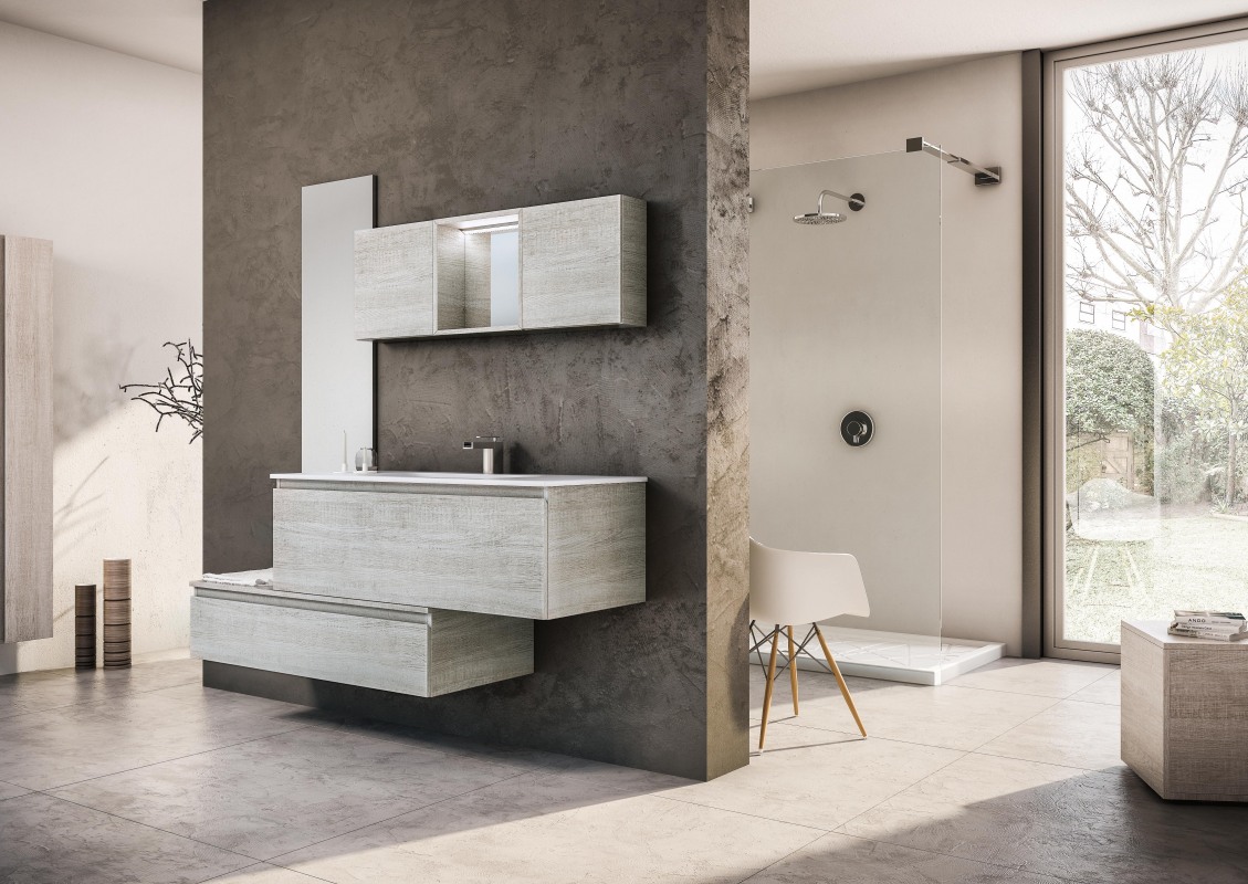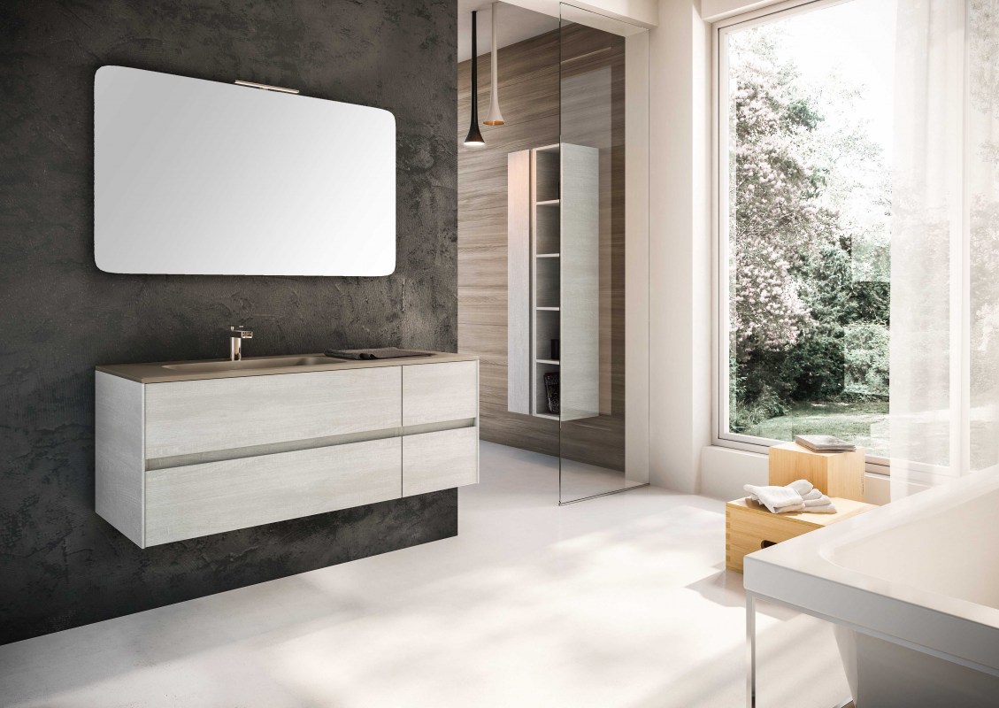 Una collezione versatile dalle molteplici finiture e colorazioni, che si completa grazie a cinque profondità diverse di mobili per creare una composizione d’arredo bagno perfettamente personalizzata.