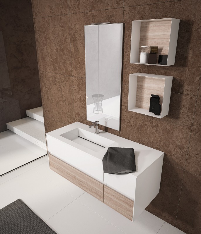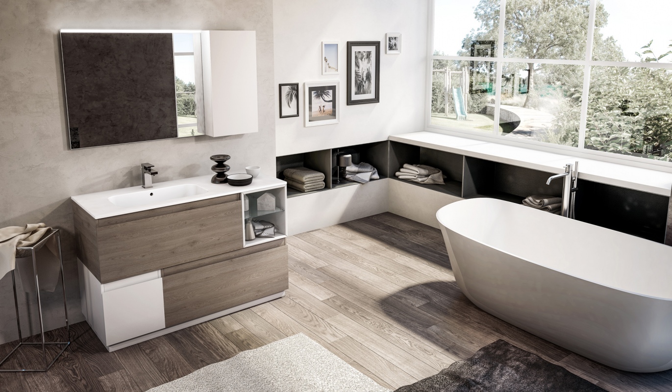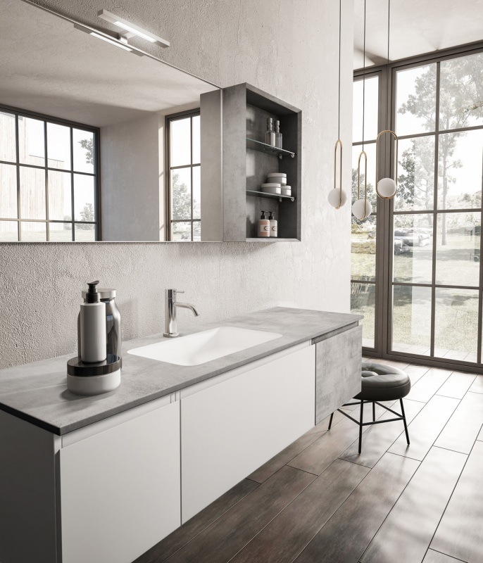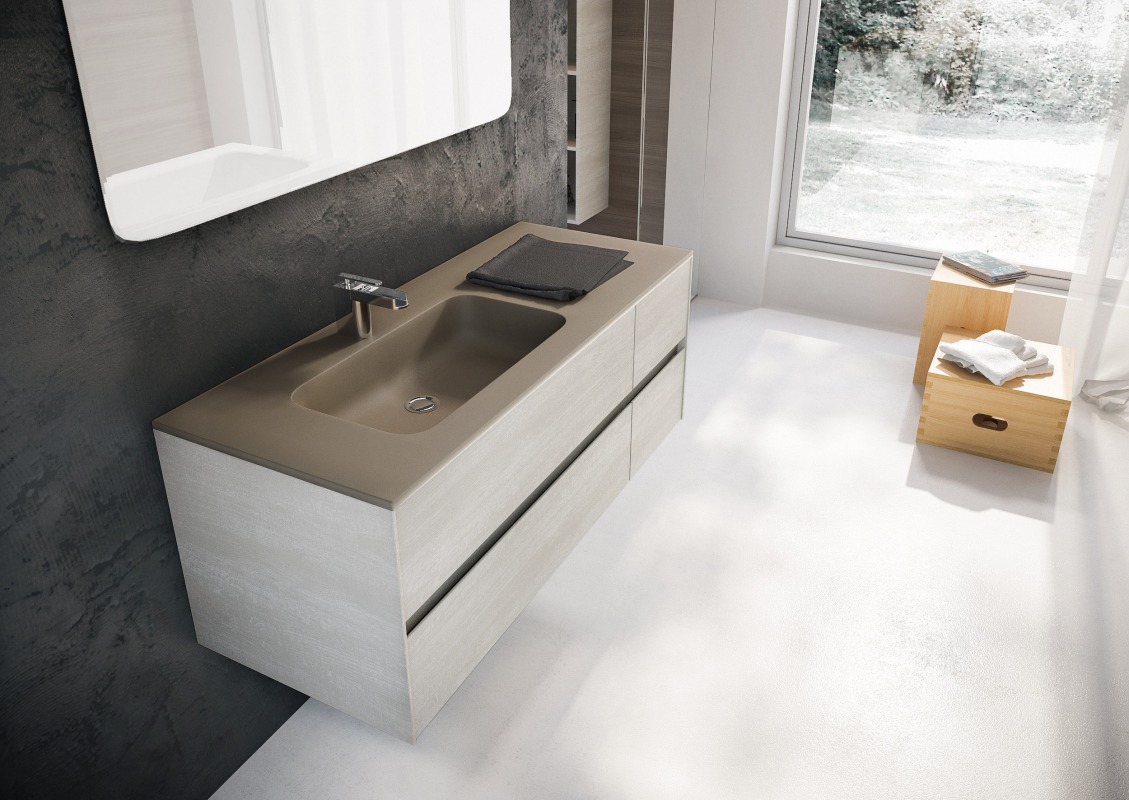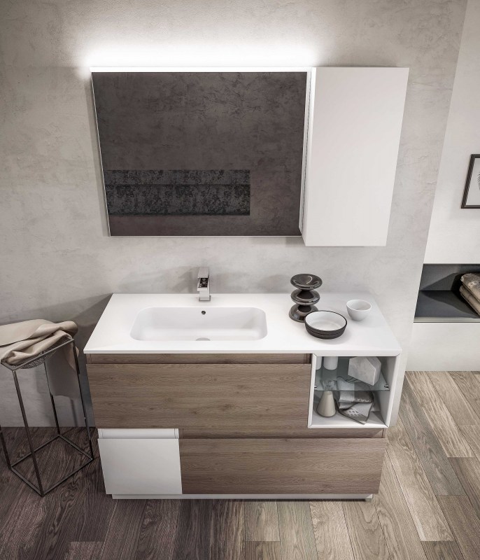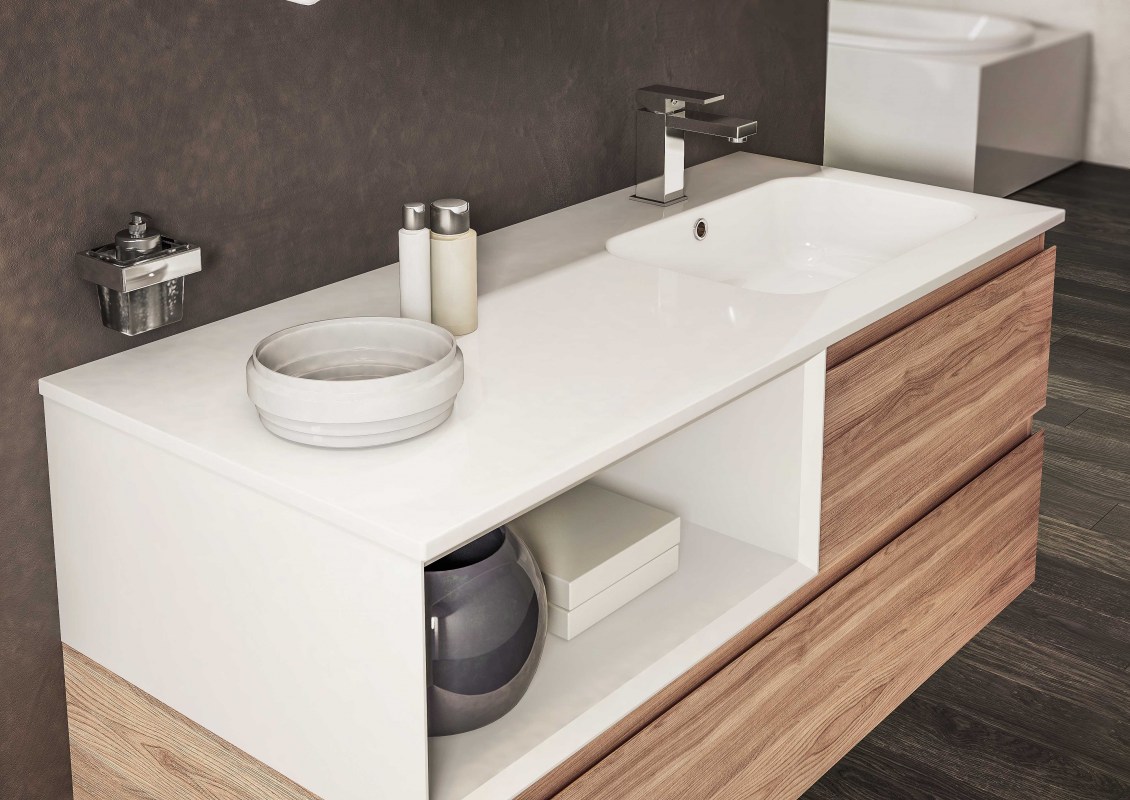 Una collezione versatile dalle molteplici finiture e colorazioni, che si completa grazie a cinque profondità diverse di mobili per creare una composizione d’arredo bagno perfettamente personalizzata.