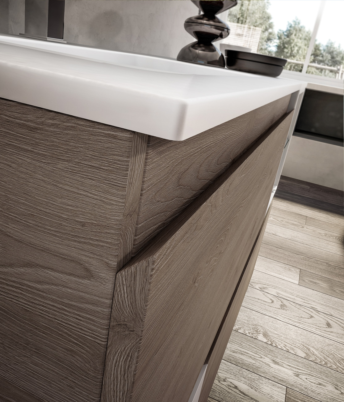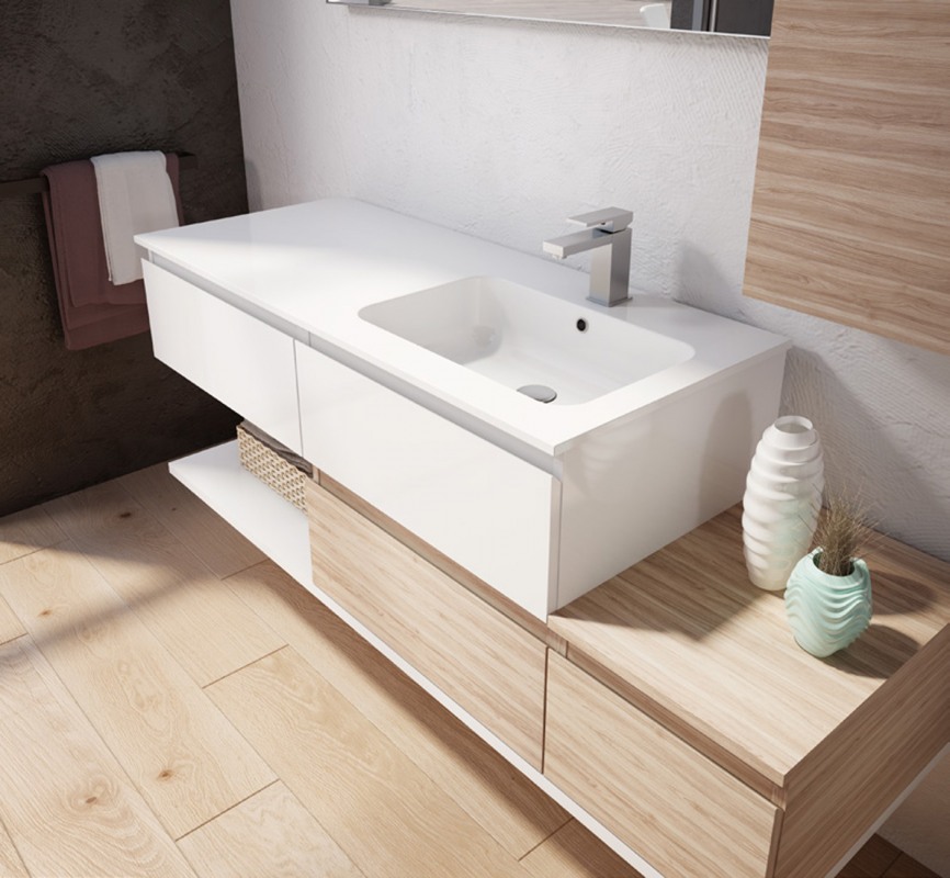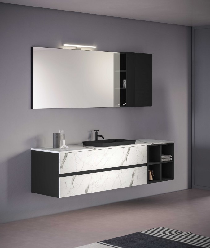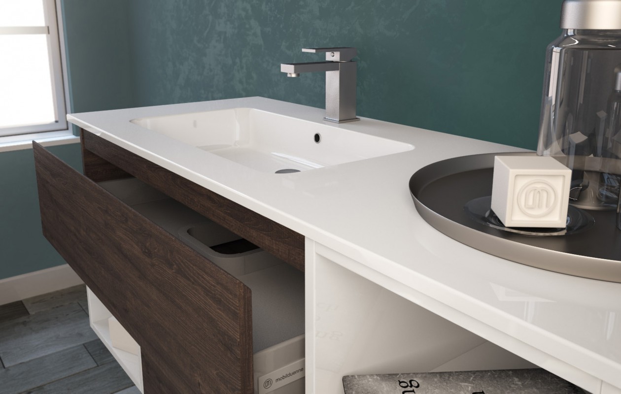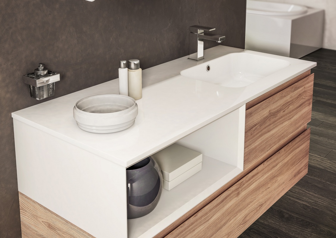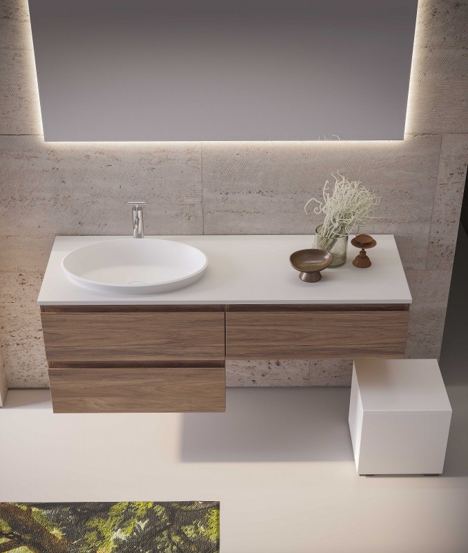 Una collezione versatile dalle molteplici finiture e colorazioni, che si completa grazie a cinque profondità diverse di mobili per creare una composizione d’arredo bagno perfettamente personalizzata.