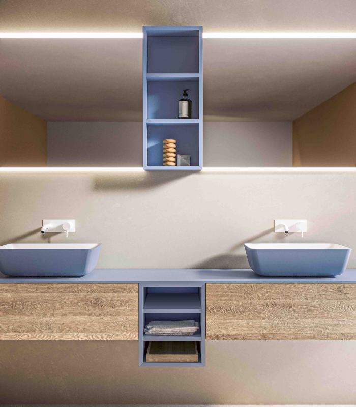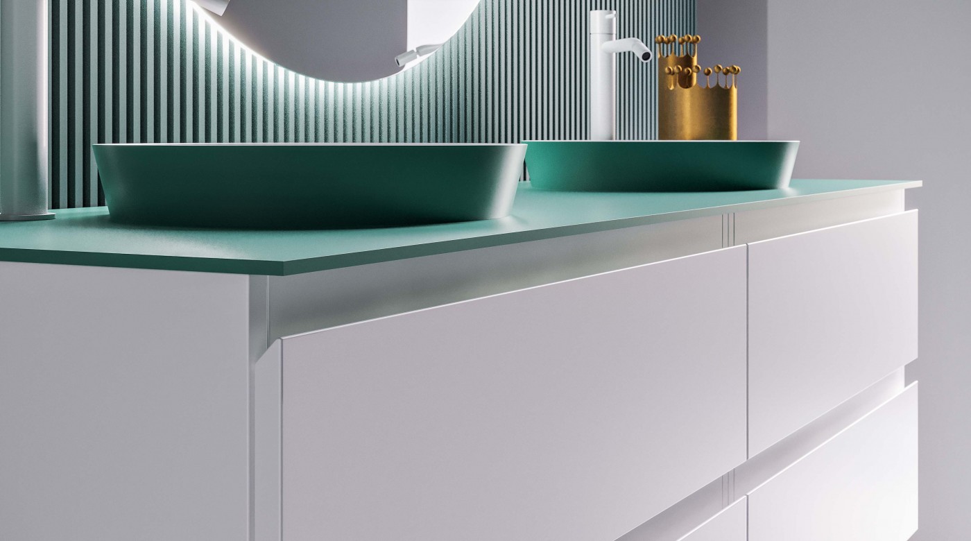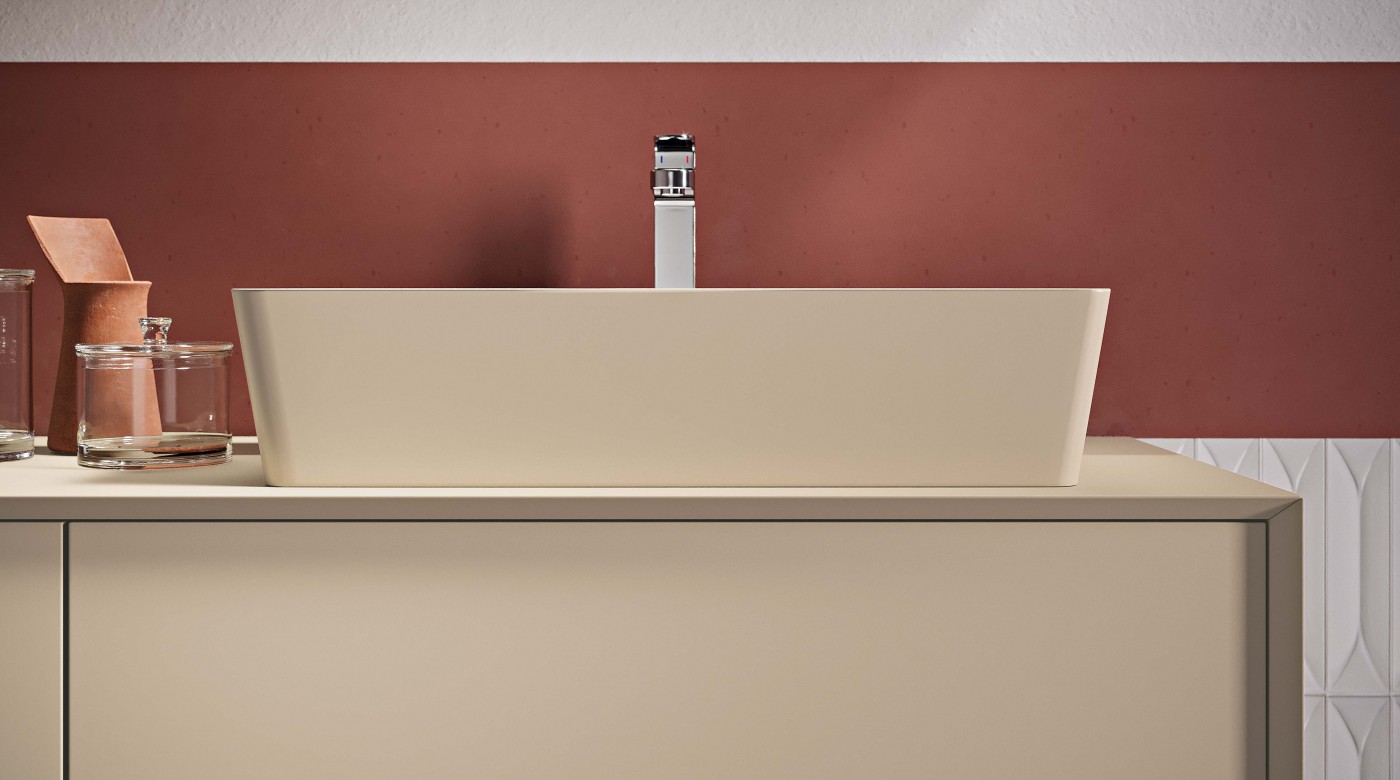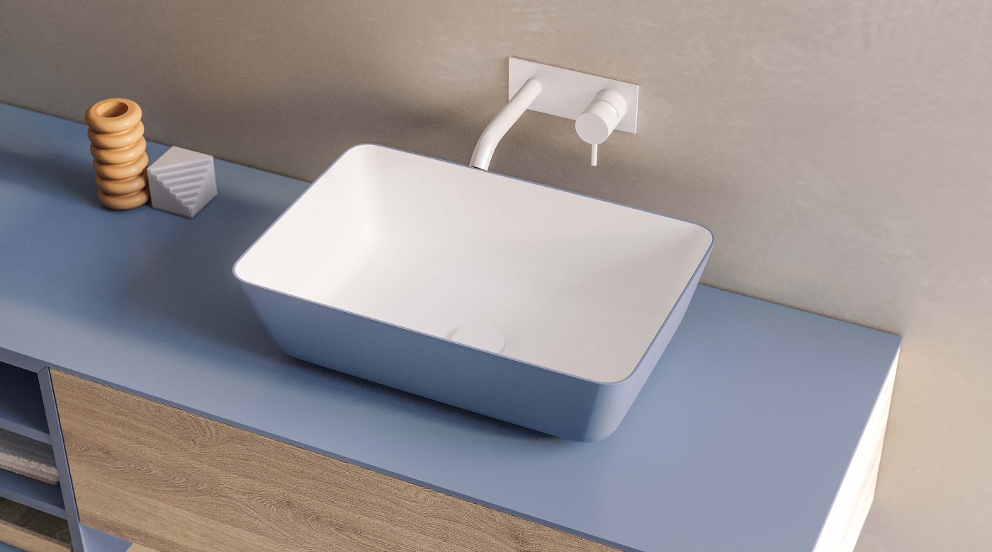 I lavabi colorati sono disponibili nei due materiali solid: mineral e ocritech.
