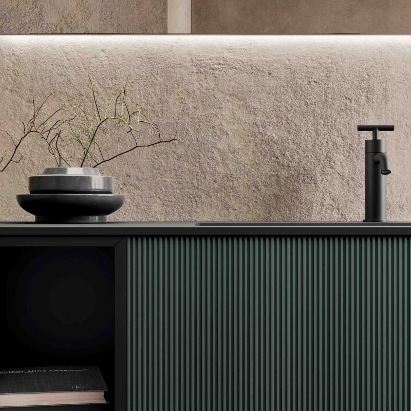 I fianchi dei mobili possono essere realizzati con lavorazione millerighe oppure con una superficie liscia standard.
