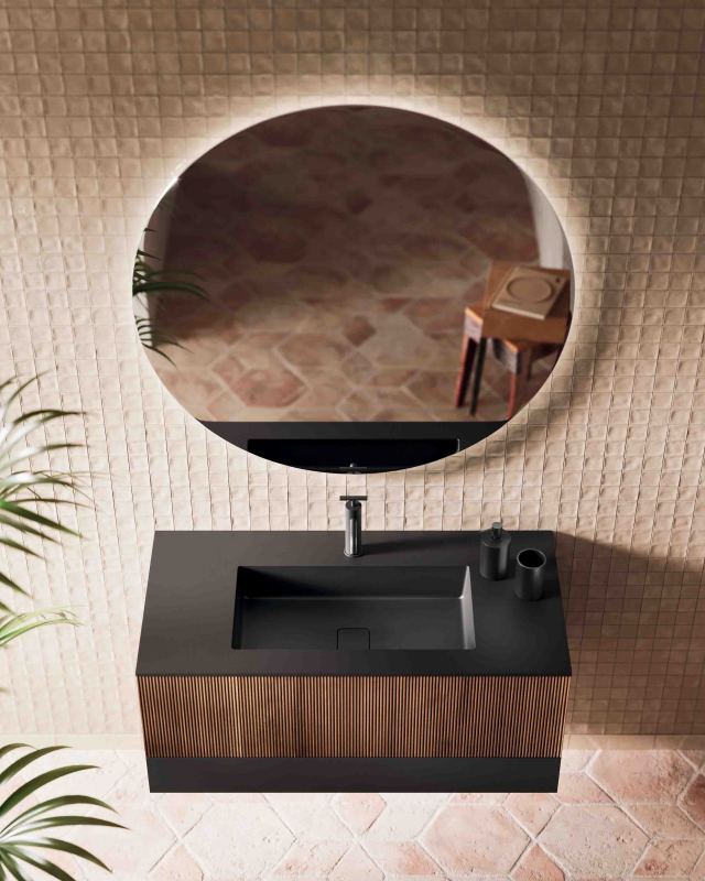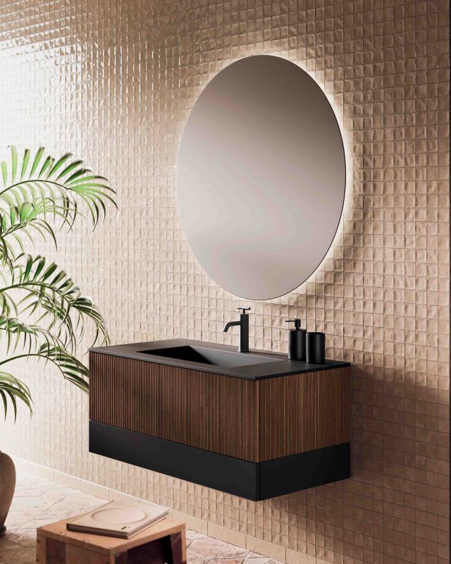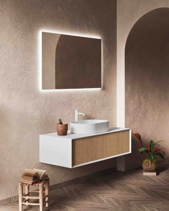 Le basi millerighe sono disponibili nelle finiture massello rovere naturale e noce canaletto e nei laccati opachi, sia nei colori di nostra selezione che nei colori RAL e NCS.