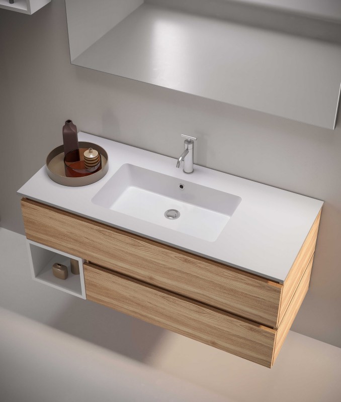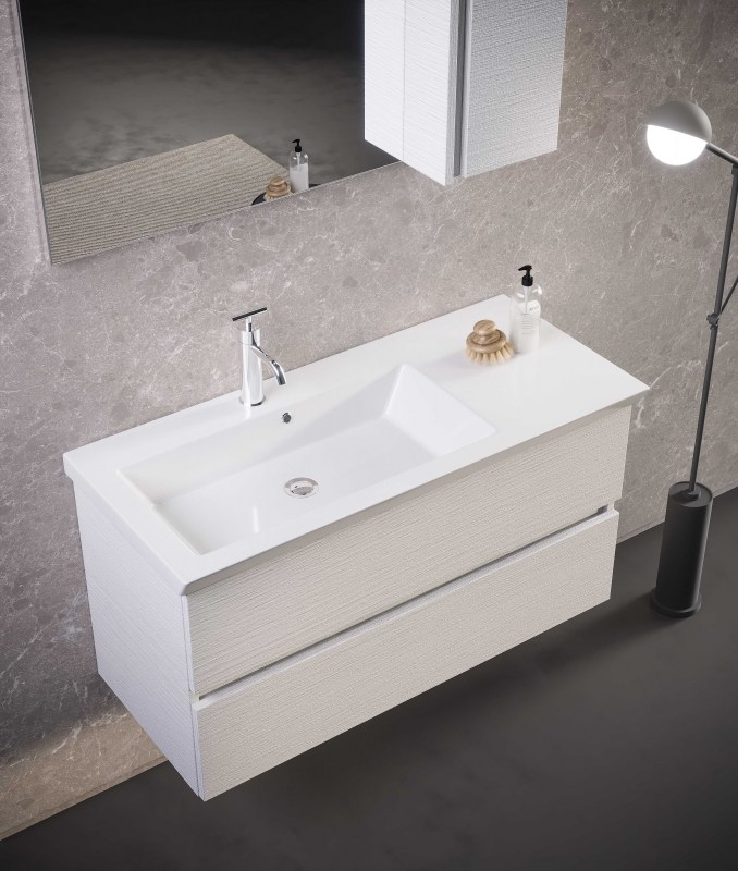 Da sempre collezione di punta Mobilduenne, i monoblocchi propongono una concezione moderna e raffinata di arredo bagno.
