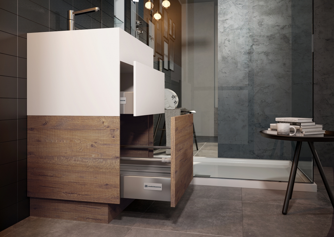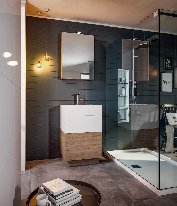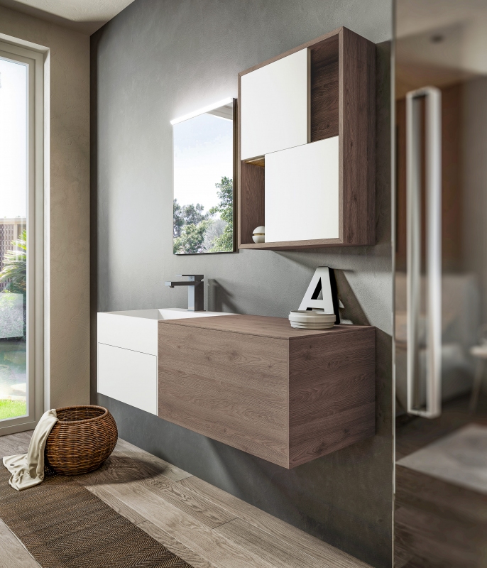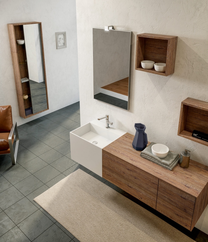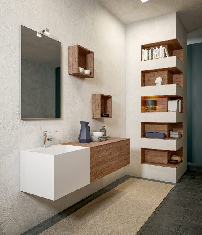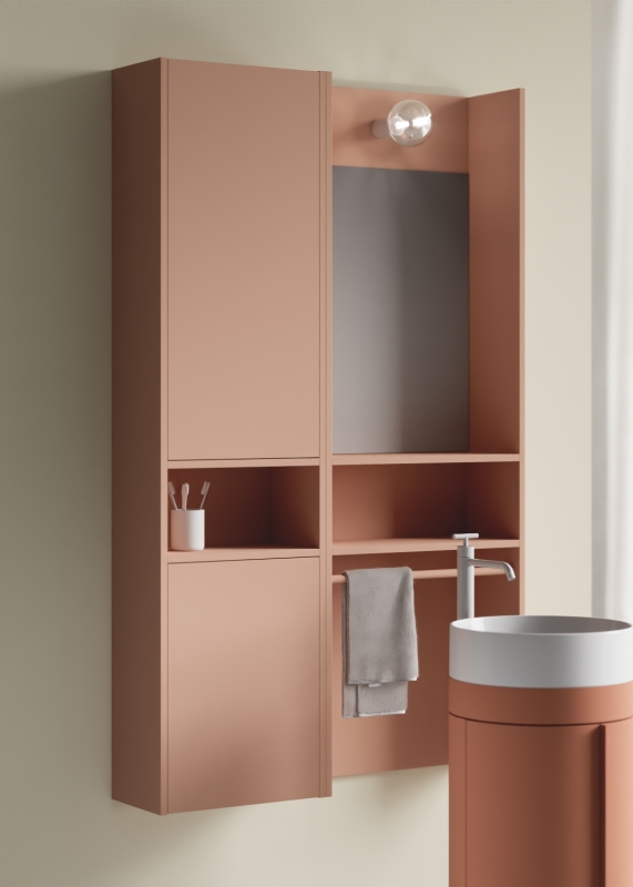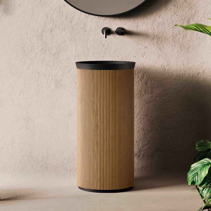 I lavabi sono realizzati in materiale acrilico di colore bianco o in una selezione di colori neutri in finitura opaca.
