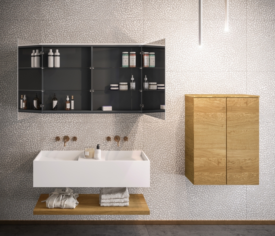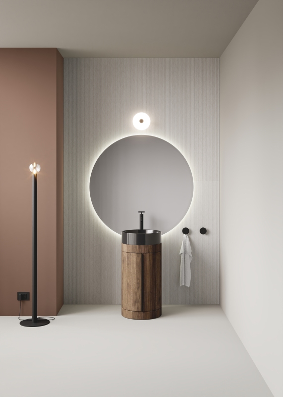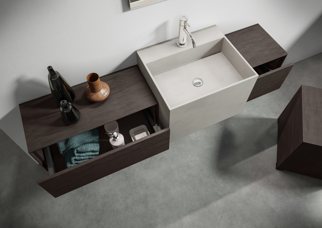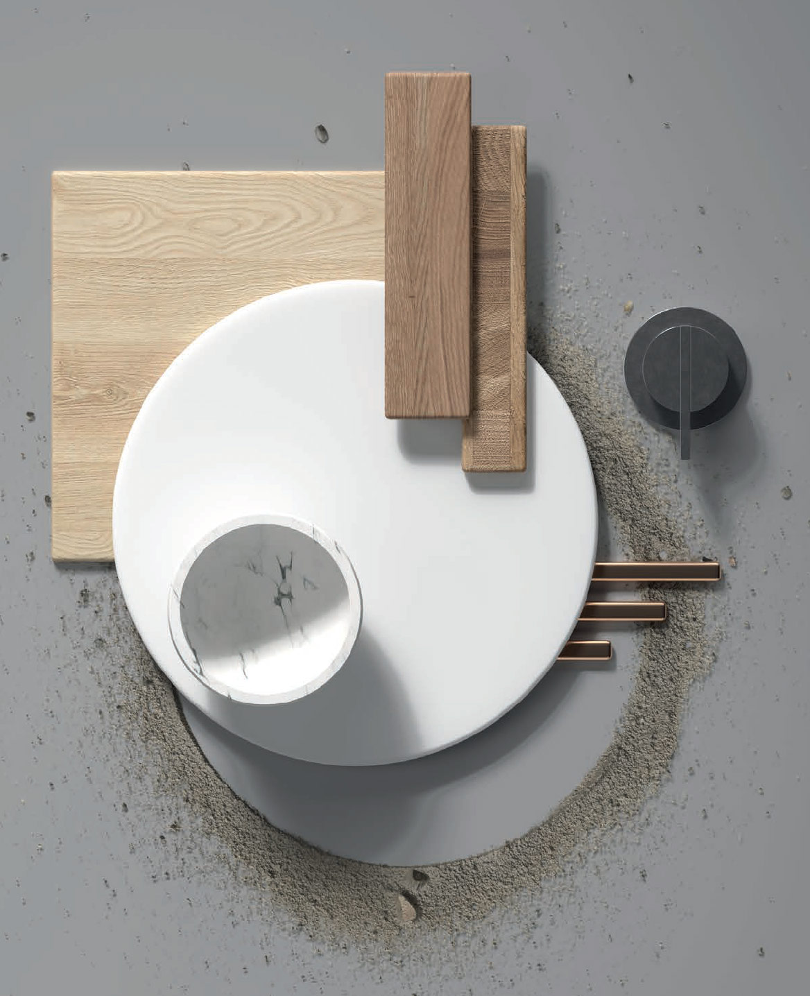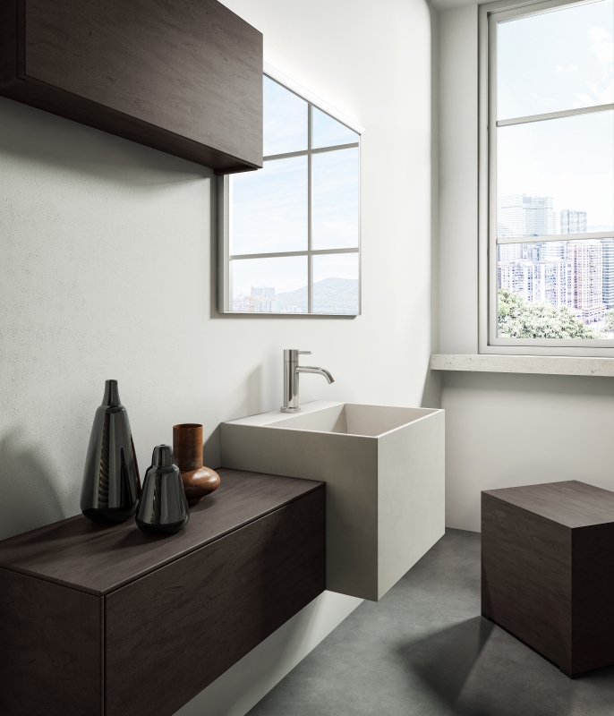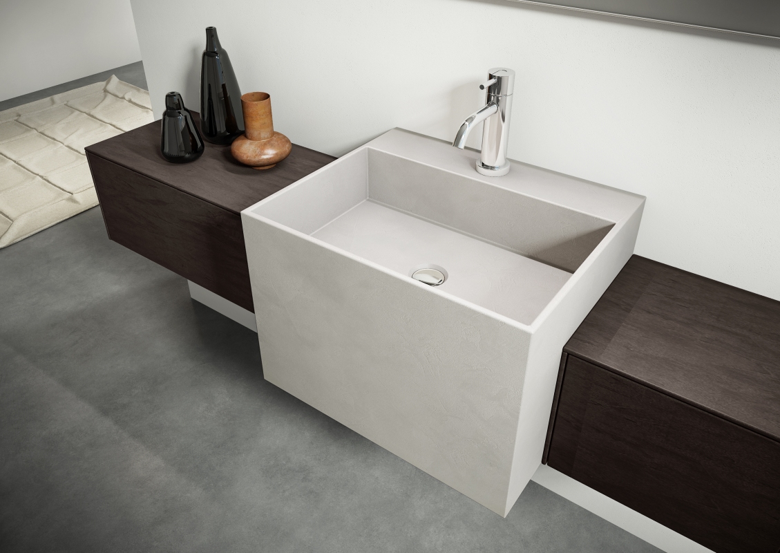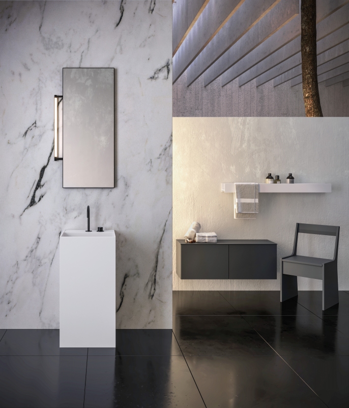 La collezione di lavabi Monolite, composta da quattro varianti dalle forme minimali e dalla forte personalità, caratterizza lo spazio per semplicità estetica e purezza formale.