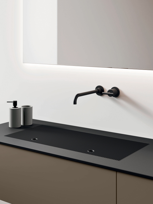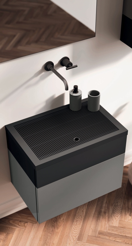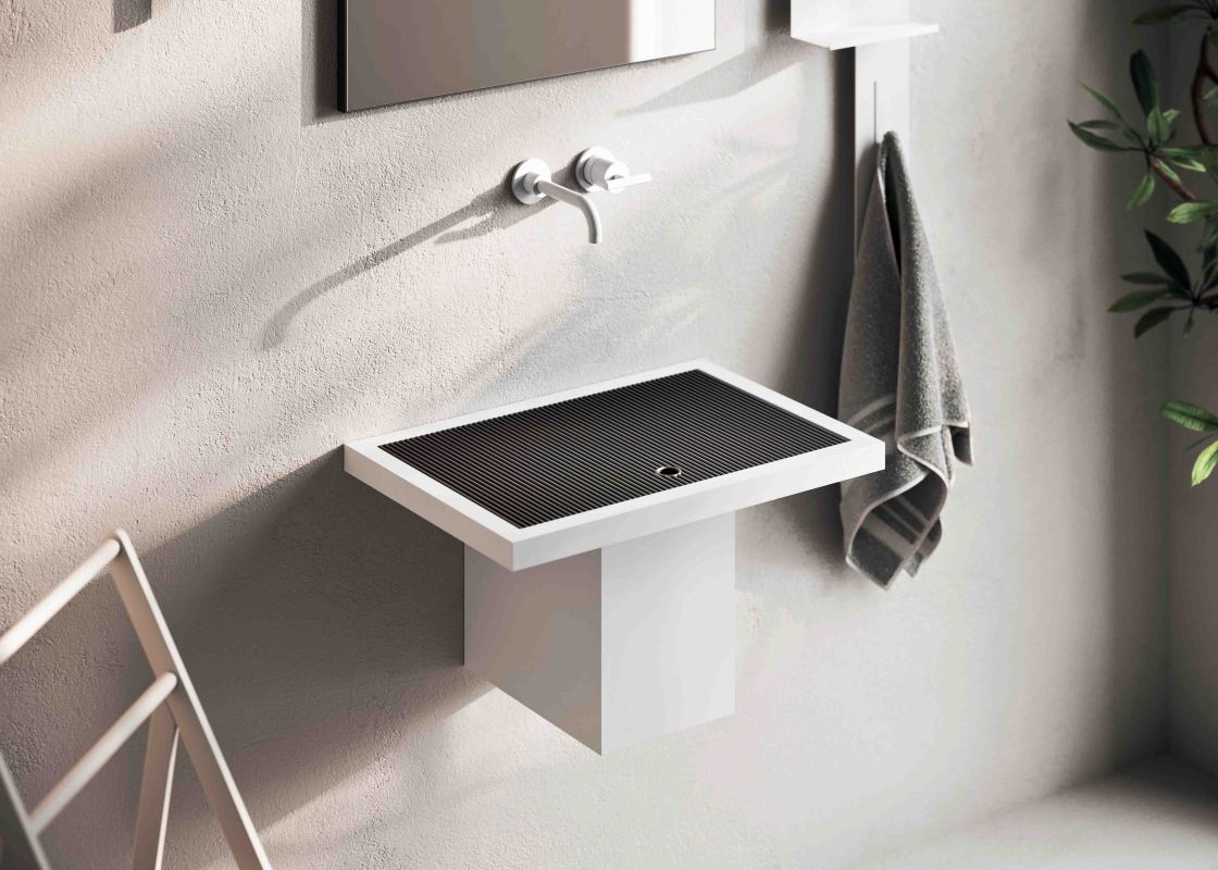 armoniosamente con le vasche, mantenendo le dimensioni standard dei lavabi e garantendo un’estetica raffinata. La facilità di spostamento della griglia rende possibile l’utilizzo della vasca integrata con la griglia come coperchio-contenitore o, se necessario, consente di usufruire di una vasca standard senza rinunciare alla comodità.