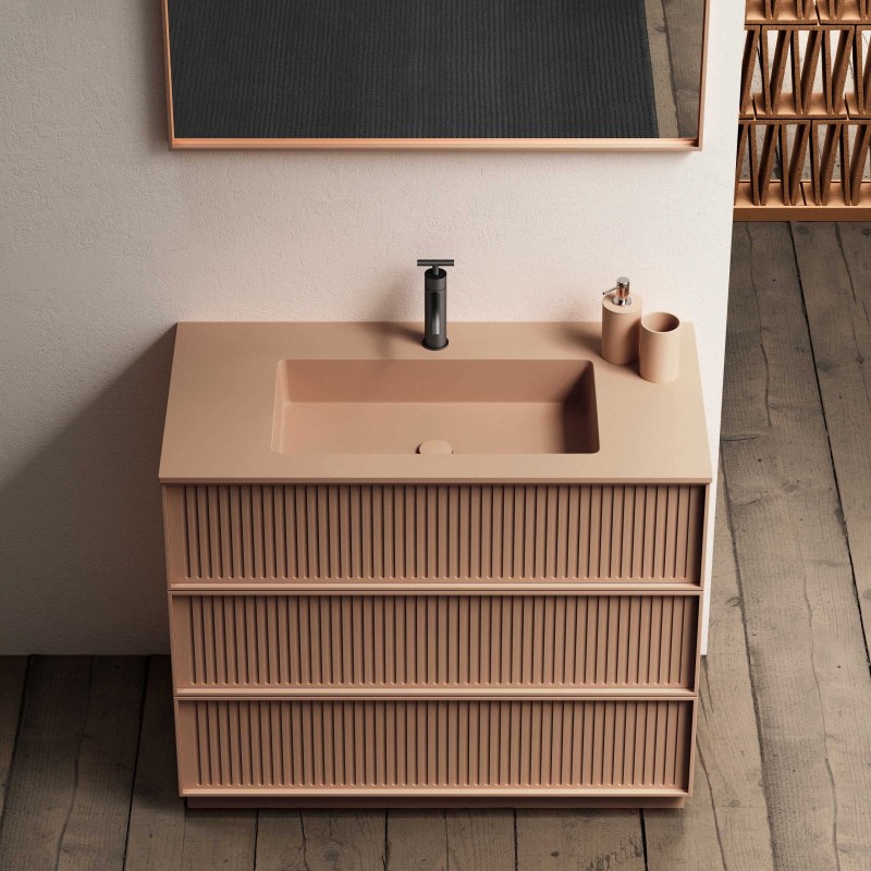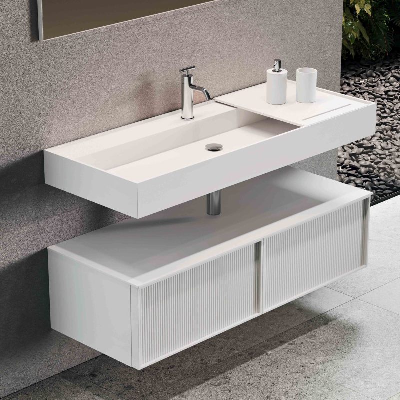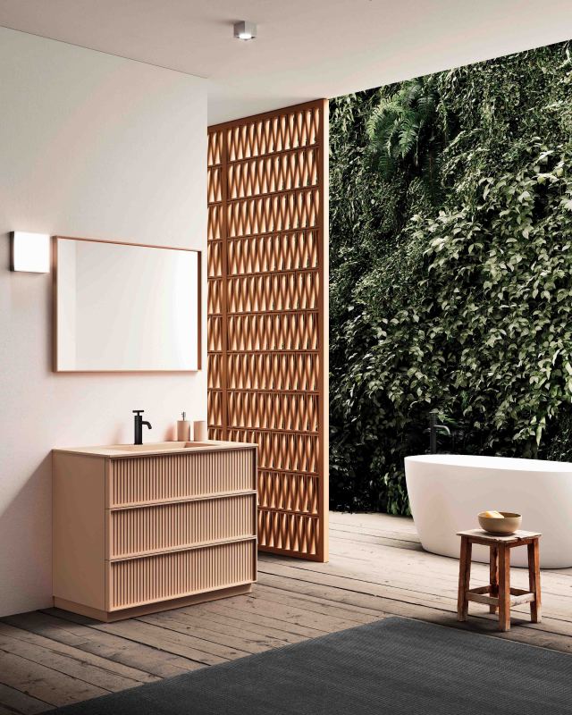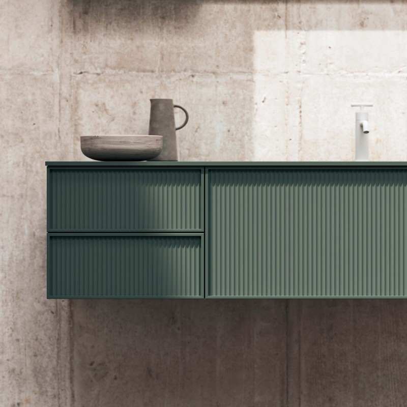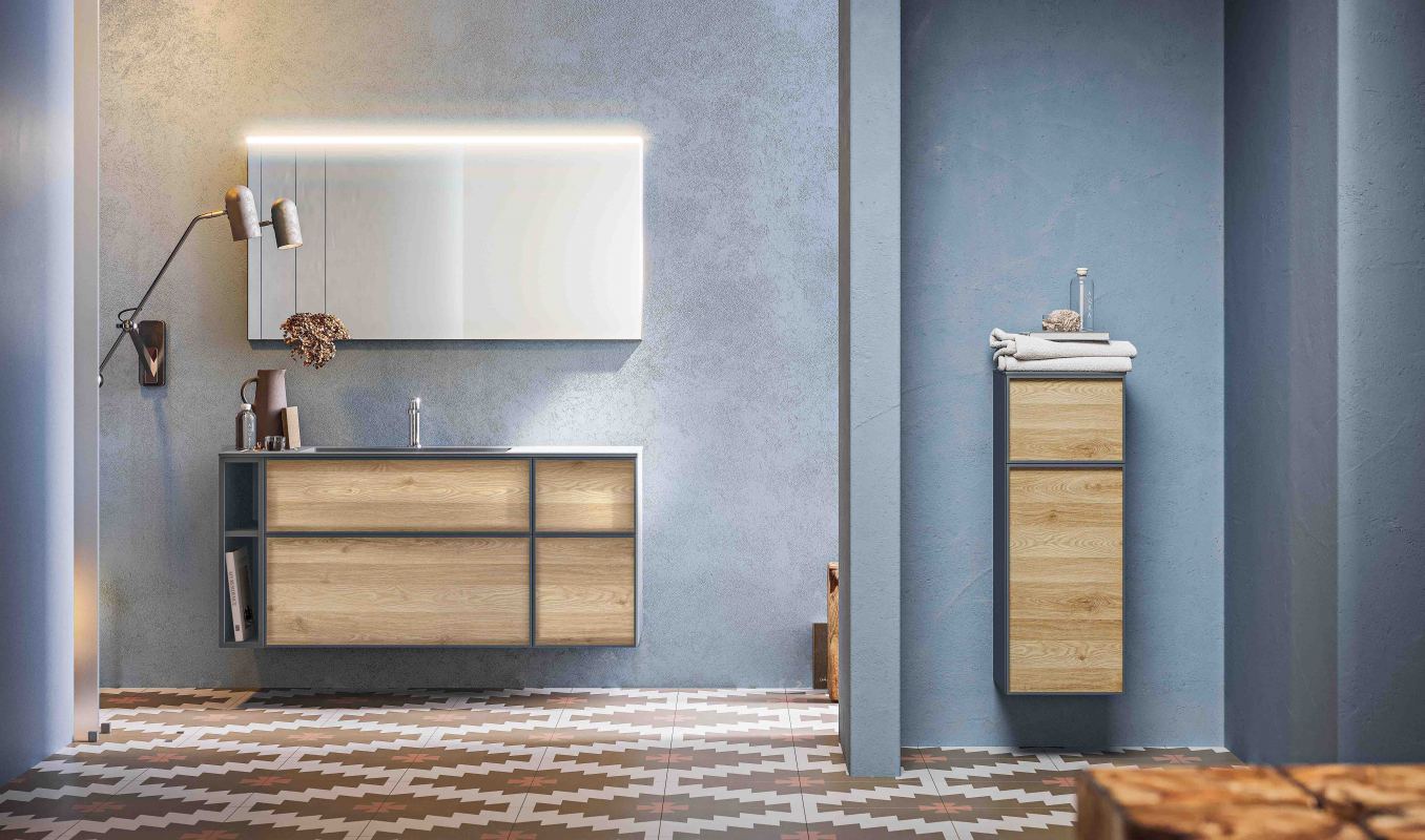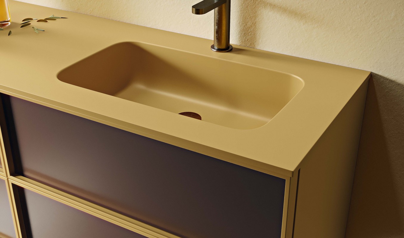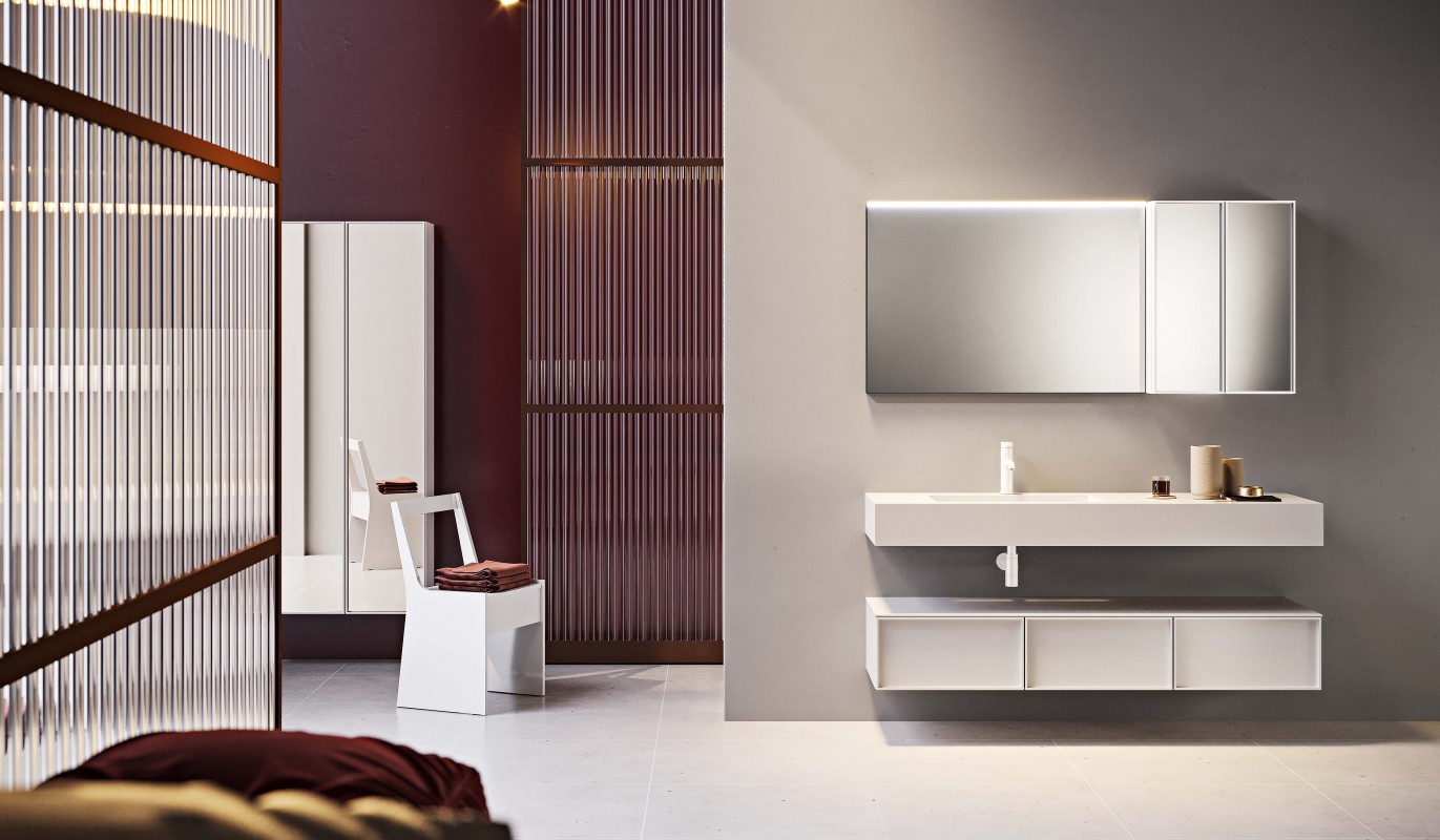 Il telaio metallico laccato opaco ospita una piccola gobba nella parte superiore per facilitare l’apertura. I pannelli dei frontali possono essere a specchio extrachiaro o bronzato, laccati, nelle essenze legno e in massello.