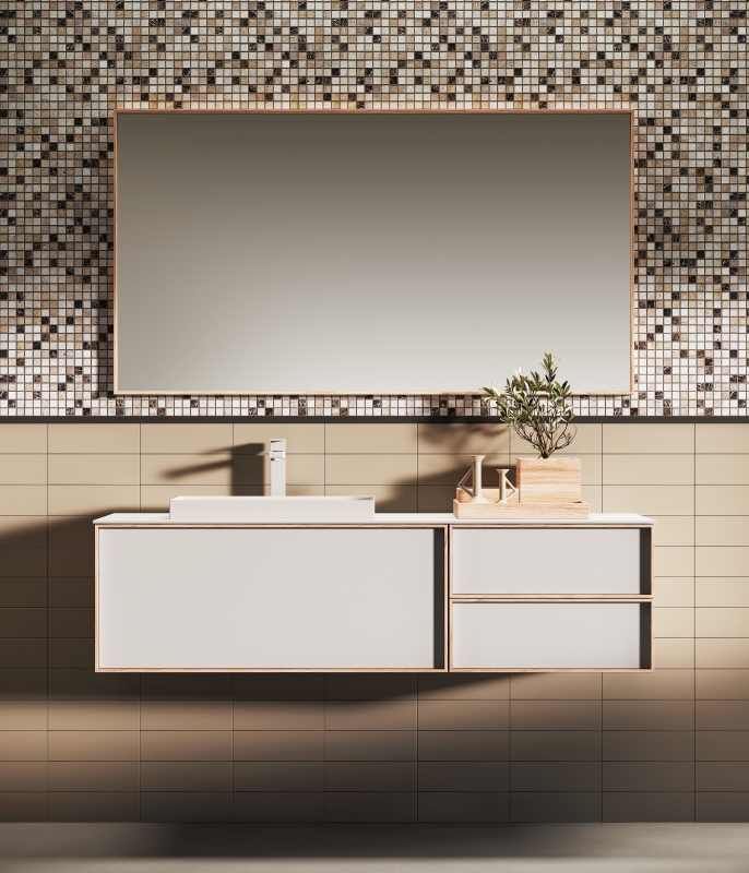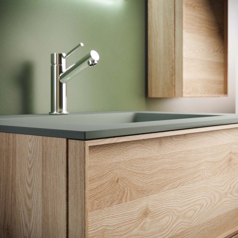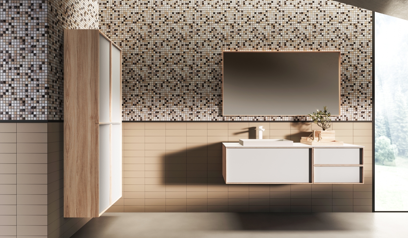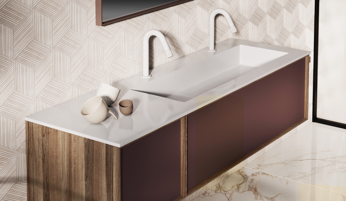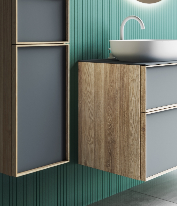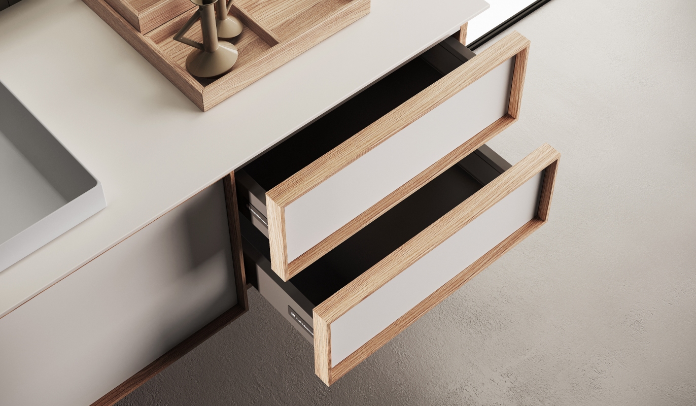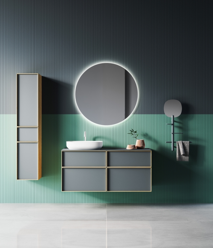 La collezione Quadro rilegge il frontale a telaio attraverso l’elemento caratterizzante della struttura che incornicia un frontalino a contrasto cromatico.
