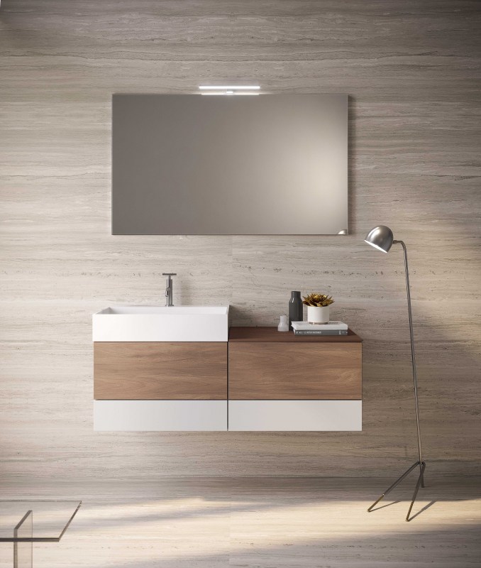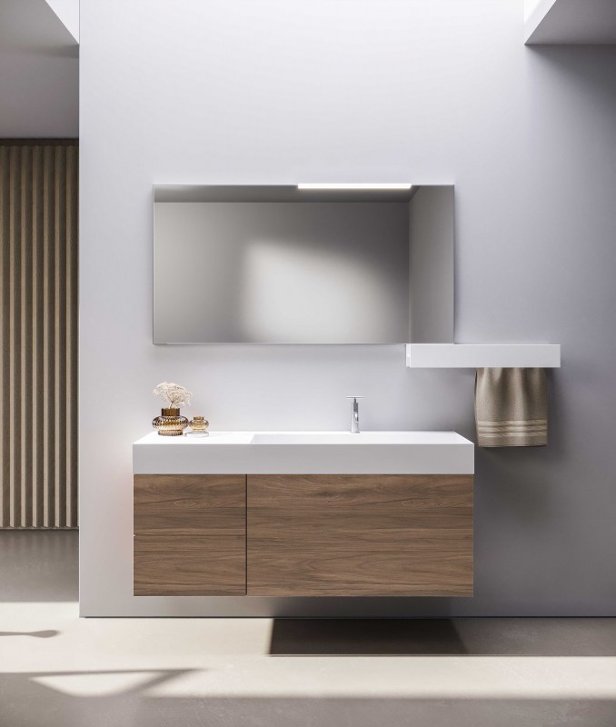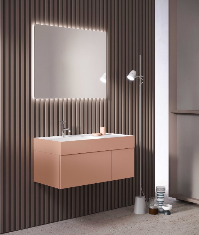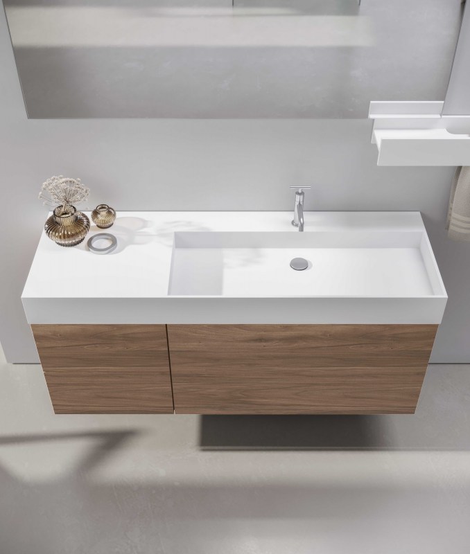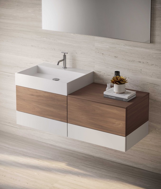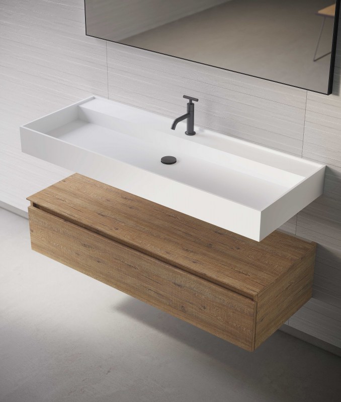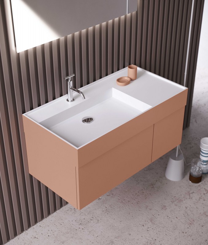Consolle in ocritech disponibile nella finitura opaca, contiene al suo interno una vasca che può essere posizionata al centro della consolle, decentrata oppure a tutta vasca per una soluzione minimale e di grande effetto.